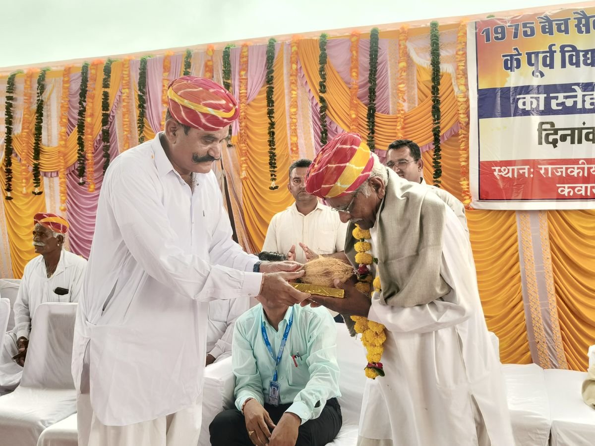 बाड़मेर में धोती-कुर्ता और साफा पहने हुए 70 साल के आसपास के स्टूडेंट्स कक्षा में दरी पर बैठे हैं। 90 साल की उम्र के टीचर उन्हें पढ़ा रहे हैं। यह दृश्य सुनने और देखने में अलग लग रहा है। लेकिन ऐसा ही कुछ बाड़मेर जिले की राजकीय उच्च माध्यमिक स्कूल कवास में हुआ है। यहां से तमिलनाडु के पूर्व डीजीपी सांगाराम सुथार की पहल पर 1975 में इसी स्कूल के 10वीं के बैच के स्टूडेंट्स का स्नेह मिलन प्रोग्राम का आयोजन किया गया।