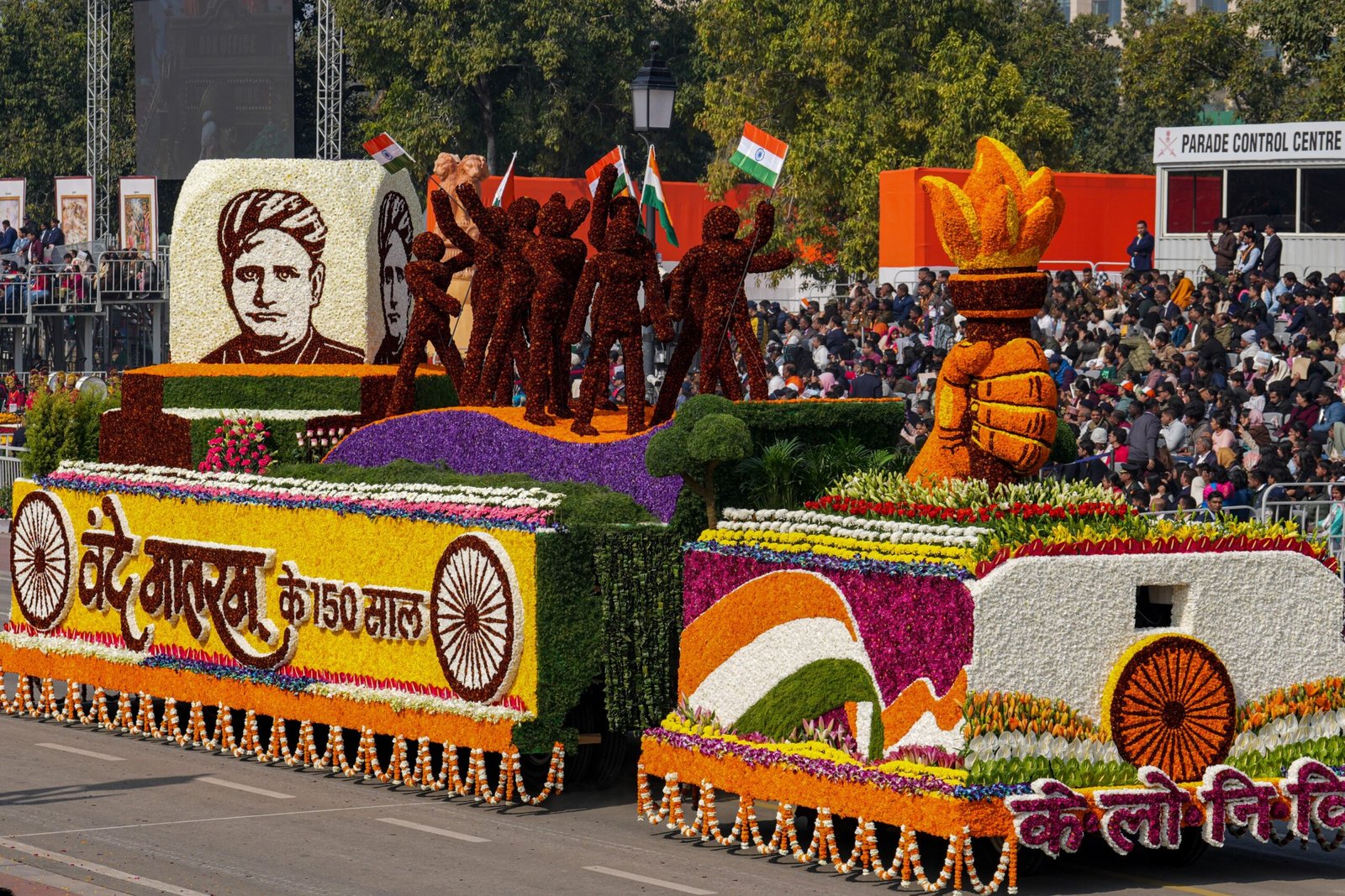 ‘वंदे मातरम: एक राष्ट्र की आत्मा की पुकार’ थीम पर आधारित, झांकी के अग्रभाग में वंदे मातरम की पांडुलिपि को बनाते हुए दिखाया गया था। इसके निचले हिस्से में एक पैनल पर चटर्जी की एक छवि दिखाई गई थी।