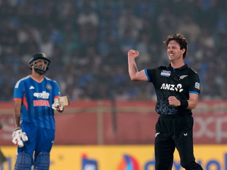 इसके बाद उसी ओवर की आखिरी गेंद पर कप्तान सूर्यकुमार यादव का कैच छूट गया। शॉर्ट ऑफ लेंथ गेंद पर सूर्यकुमार का शॉट लीडिंग एज लेकर हवा में उछला, मैट हेनरी ने फॉलो-थ्रू में स्लाइड करते हुए कैच लेने की कोशिश की, लेकिन गेंद उनके हाथ से ठीक पहले जमीन पर गिर गई। हालांकि अगले ही ओवर में जैकब डफी ने उन्हें खुद की बॉल पर कैच लेकर पवेलियन भेज दिया। वे 8 रन ही बना सके।