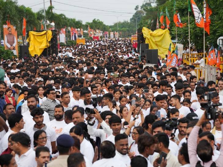 पीएम मोदी के जन्मदिन के अवसर पर भोपाल में नमो मैराथन दौड़ का आयोजन हुआ। बीजेपी युवा मोर्चा द्वारा आयोजित इस मैराथन में भोपाल के अलग-अलग इलाकों से युवा शामिल हुए। मैराथन में CM डॉ मोहन यादव, बीजेपी प्रदेश अध्यक्ष हेमंत खंडेलवाल, संगठन महामंत्री हितानंद शर्मा, सांसद आलोक शर्मा, मंत्री विश्वास सारंग, कृष्णा गौर, विधायक भगवानदास सबनानी, युवा मोर्चा के राष्ट्रीय महामंत्री रोहित चहल, बीजेपी युवा मोर्चा के प्रदेश अध्यक्ष वैभव पवार, भोपाल शहर अध्यक्ष रविन्द्र यती, युवा मोर्चा अध्यक्ष अंकित आर्य मौजूद थे।