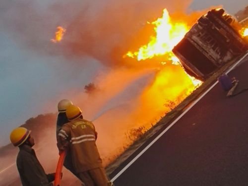 मथुरा में केमिकल से भरा टैंकर जयपुर-बरेली हाईवे पर पलट गया। इसके बाद धमाके के साथ टैंक फट गया और भीषण आग लग गई। पलभर में आग ने विकराल रूप ले लिया। टैंकर चालक ने कूदकर जान बचाई। आग की लपटें 20 फीट ऊंची उठने लगीं और धुएं का गुबार 1 किमी दूर से दिखाई देने लगा।