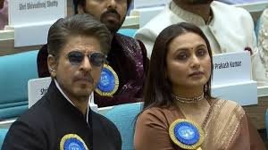 दिल्ली में मंगलवार को 71वें राष्ट्रीय फिल्म पुरस्कार समारोह का आयोजन हुआ। इस दौरान कई वीडियो सोशल मीडिया पर वायरल हो रहे हैं। इसी बीच एक वीडियो सामने आया है, जिसमें शाहरुख खान रानी मुखर्जी की साड़ी का पल्लू पकड़ते नजर आ रहे हैं।