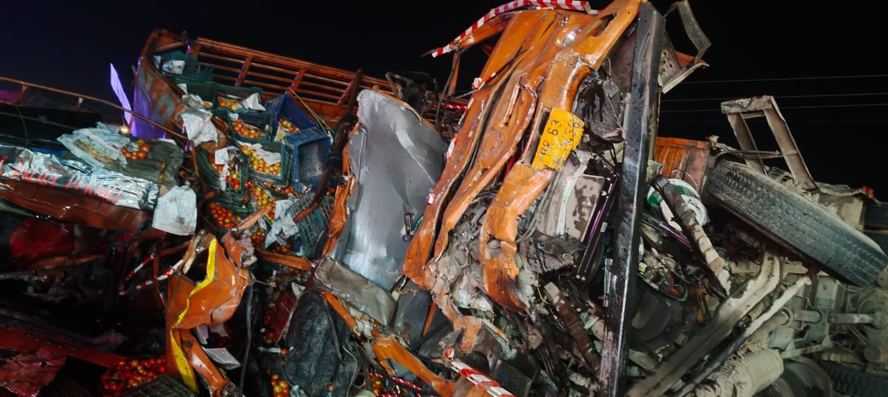 रवांजना डूंगर थाना अधिकारी दिलीप कुमार ने बताया कि एक ट्रक सवाई माधोपुर की ओर से आ रहा था, जबकि दूसरा ट्रक 8 लेन एक्सप्रेस-वे की तरफ से हाईवे पर उतरा था। एक ट्रक में सब्जियां भरी हुई थीं, जबकि दूसरे में प्लाई बोर्ड लदा हुआ था। रात करीब 11 बजे कुस्तला सर्किल के पास दोनों ट्रकों के बीच जोरदार टक्कर हो गई।