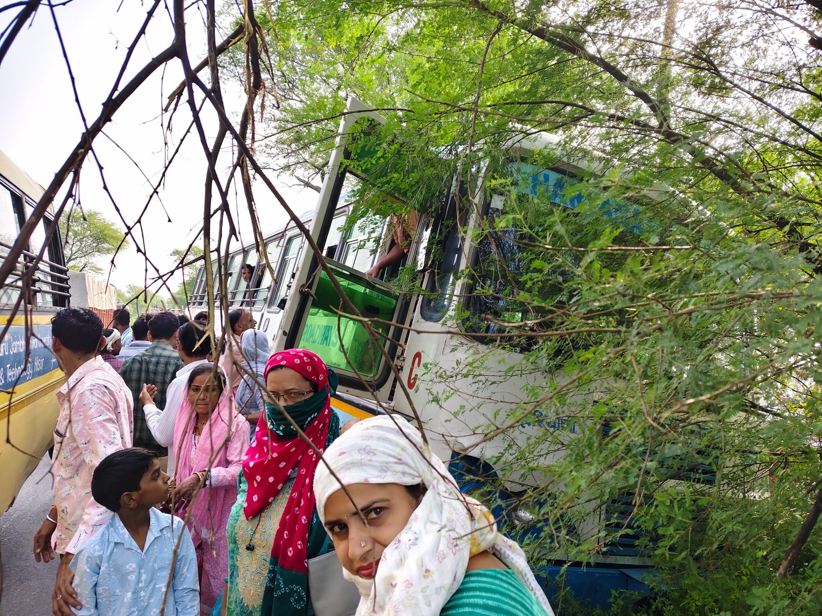 बस पूरी तरह से सड़क से नीचे उतर गई थी। यात्रियों को ड्राइवर ने खिड़की के रास्ते सुरक्षित बाहर निकाला।